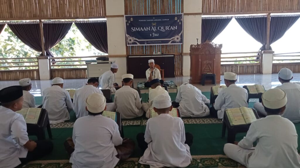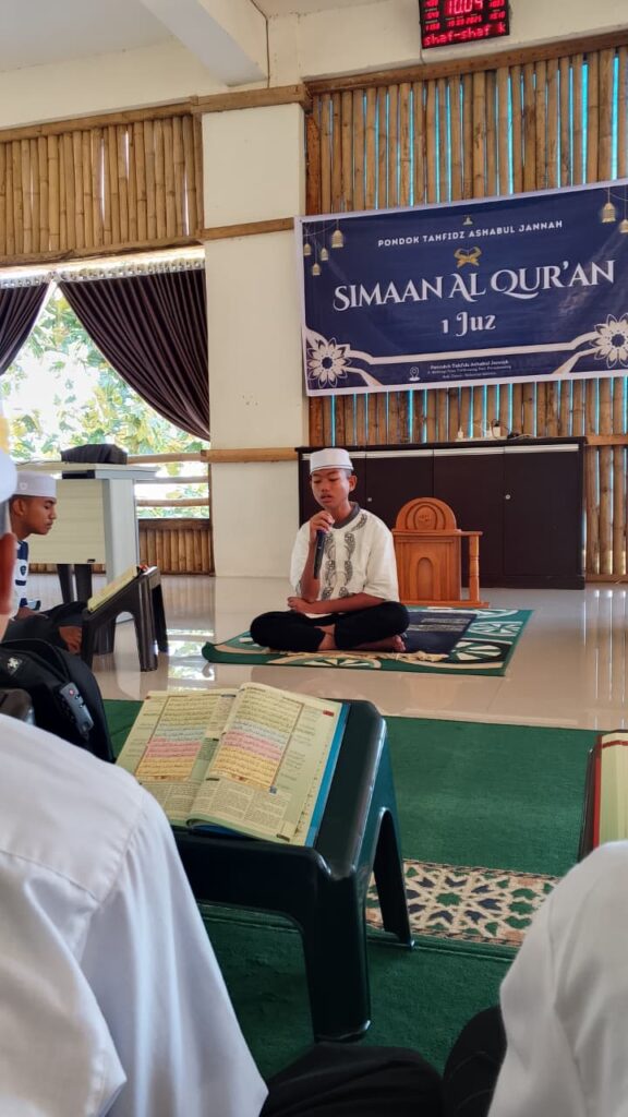 Cahaya pagi dan lantunan ayat suci menemani para santri yatim dan dhuafa Pondok Tahfidz Ashabul Jannah Gowa, duduk bersila di atas hamparan karpet hijau. Mengenakan pakaian putih bersih dan peci yang rapi, mereka menyimak dengan khusyuk bacaan Juz 1 yang dilantunkan oleh teman seangkatan mereka. Para pengasuh membimbing dengan kelembutan namun penuh ketegasan. Ini bukan sesi belajar, ini adalah sima’an, tradisi mulia yang menghidupkan Al-Qur’an dalam hati dan ruang.